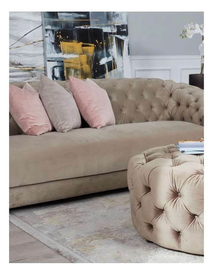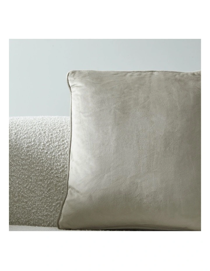 A luxe beige velvet cushion featuring a polyester piped edging in an assortment of 8 lively colours.