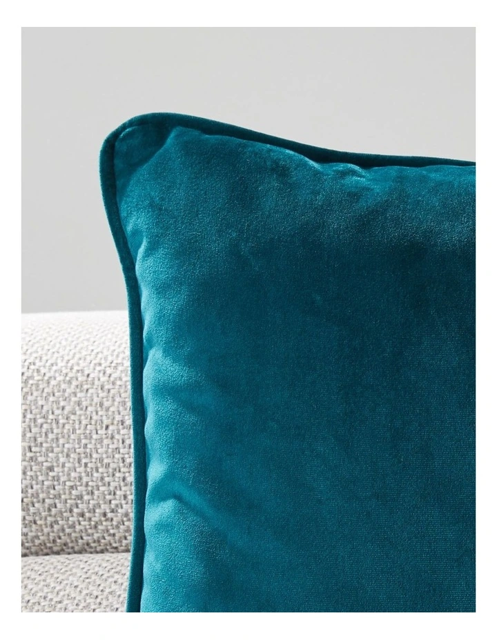 A luxe dark green velvet cushion featuring a polyester piped edging in an assortment of 8 lively colours.