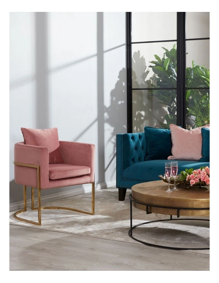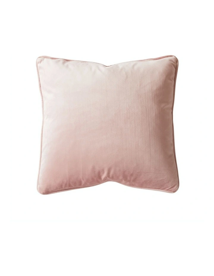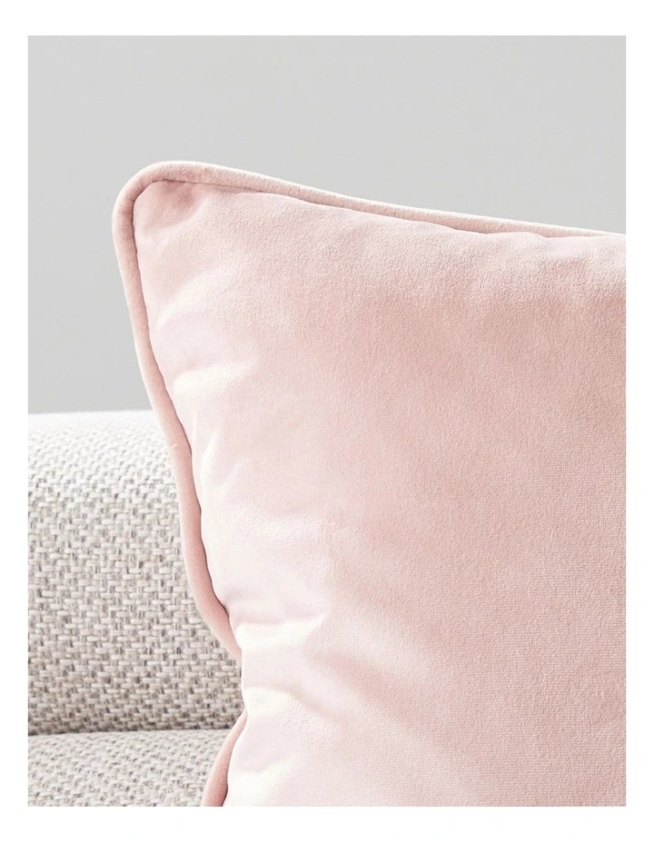 A luxe dusty pink velvet cushion featuring a polyester piped edging in an assortment of 8 lively colours.