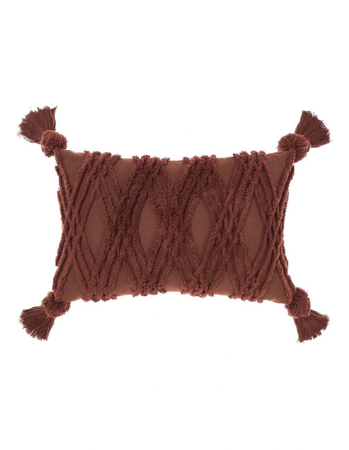 A distinctive geometric pattern, Solange in chocolate is complemented with stylish corner tassels knotted fringing a quintessential cushion for your bedroom or living space.Β
