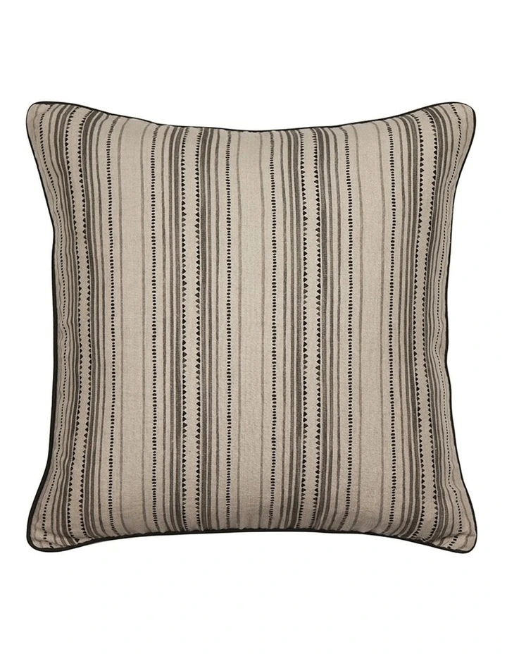 One side digital print on natural linen with plain natural linen reverse and piping. Concealed zip.