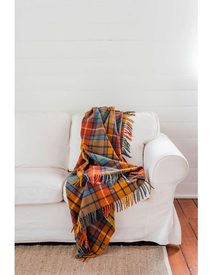Soft, but durable, you can use this beautiful Scottish tartan blanket to snuggle up during winter or as the perfect wool picnic blanket in the wild Australian landscape during the warmer months. Part of our recycled wool blanket range, this recycled wool travel rug is not just eco-friendly, it also adds a subtle Australian luxury aesthetic to your home decor.