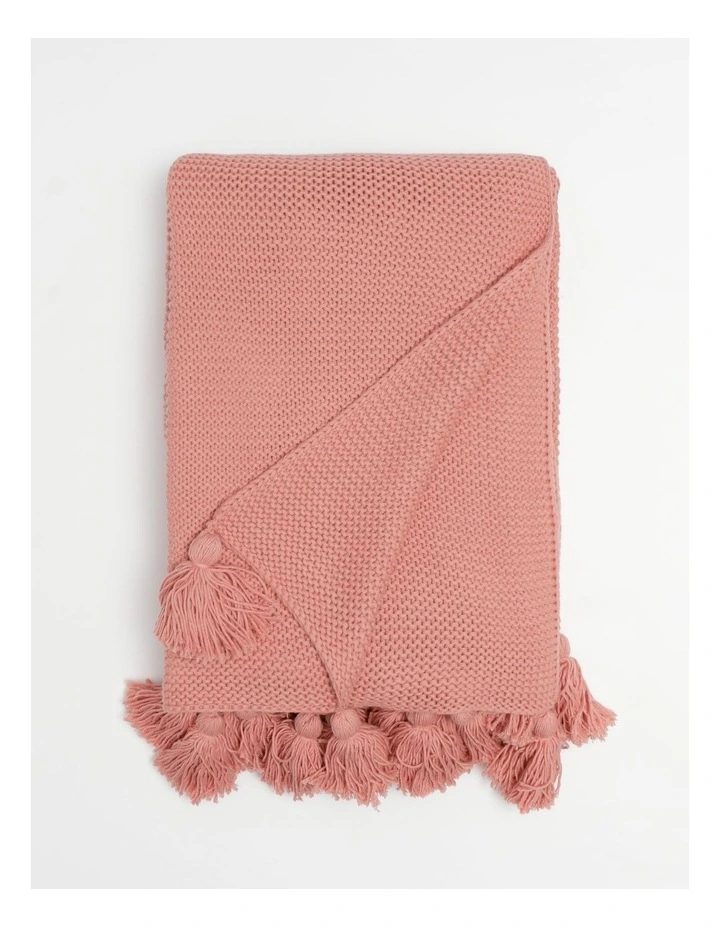 Melaky Knitted Tassel Throw in Pink ClayΒ