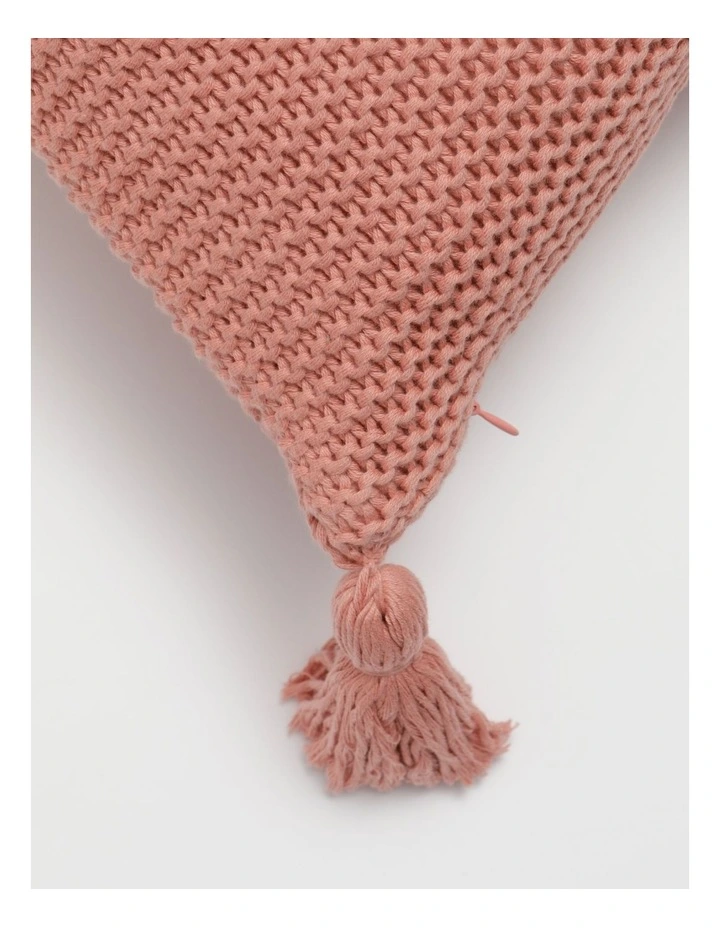 Vue Melaky Knitted Cushion with Tassels in Pink Clay